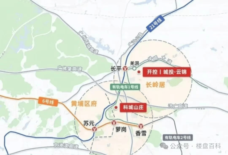 广州地铁21号线长平站B1出口几百米;坐落于黄埔科学城“豪宅生态轴”C位的长岭居;