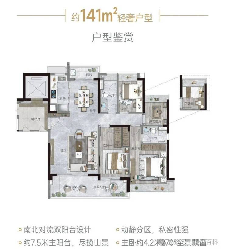 (2) 打破景观限制,板式设计排布,南北对流,双阳台,全明户型,全南望山;
