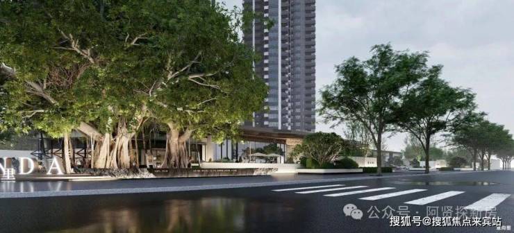 大门处保留百年榕树,打造休闲空间“榕悦广场”,休闲社交超自在!