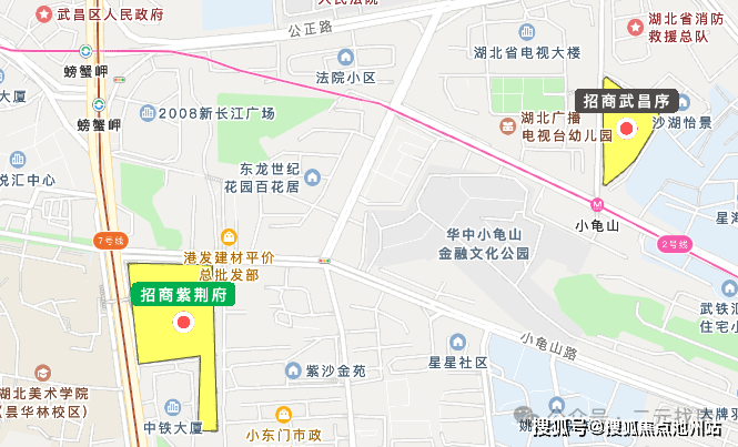 招商紫荆府,位于武昌区中山路与小龟山路交汇处,属于武昌内环。