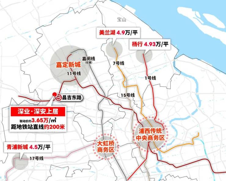 价格优势:项目 联动价3.65万/㎡,向前2站的嘉定新城项目价格在5.04万/㎡,仅是多坐几站轨交,价格就大幅度回落,价值不言而喻。