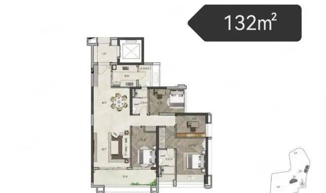 :132㎡四房、137㎡三房和 178㎡四房,大户型设计更加注重空间的奢华与功能性 。客厅宽敞大气,可作为家庭社交的核心区域 。卧室数量充足,部分户型可实现南北通透,通风采光极佳 。178㎡户型可能配备宽敞的衣帽间、书房等功能区,提升居住品质 。