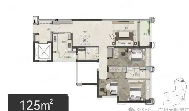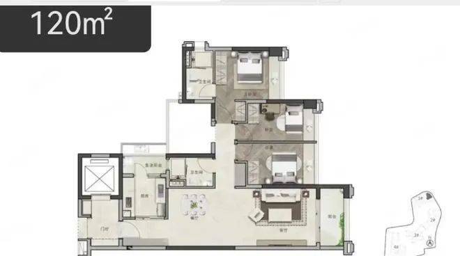 :120㎡的 3 + 1 房及 125㎡的 3 + 1 房 AB 户型,空间更为宽敞 。客厅可设置较大的景观阳台,引入更多阳光与美景 。多出来的灵动空间可灵活使用,如打造家庭影院、健身房等 。主卧套房配备独立卫浴,保障主人生活的私密性 。