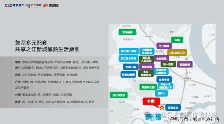 总建面约40万方的云之城·西湖TOD国际社区,之江科创城芯,为地铁12号线(在建)周九路站上盖,以住宅、商业、公园、邻里中心与学校等多元业态,铸就一座地标综合体。自带商业集群(约6100㎡)、邻里中心(约1.7万㎡)、三大主题公园(面积超5万㎡)与优质学府(九年一贯制名校及幼儿园)便捷可达。二、多元配套,共享之江醇熟生活版图◎智创-云栖小镇、艺创小镇、双浦机器人小镇;商业-西投银泰、之江银泰;◎教育-之江高中(规划)、国科大、西湖大学、中国美院、浙江音乐学院;◎公园:铜鉴湖公园、宋城、西湖风景区;