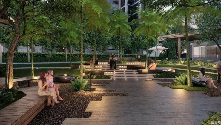活力阳光草坪:参考日本星野OMO7酒店的设计灵感,打造约1300㎡社交草坪,形成独具特色的坐阶模块,可坐可躺,享受松弛氛围