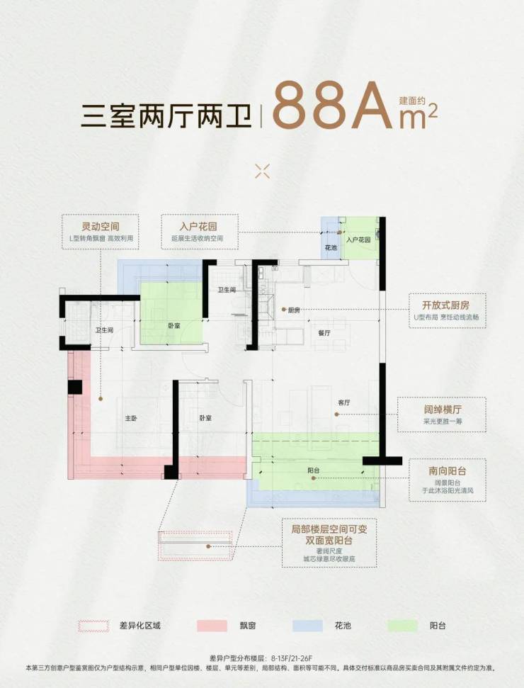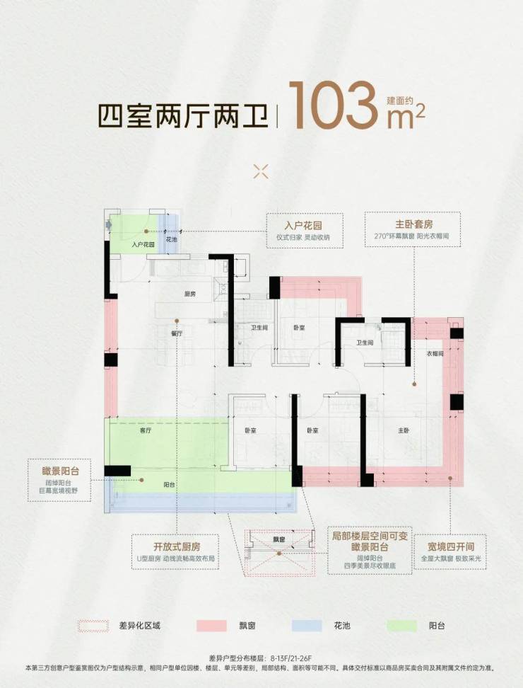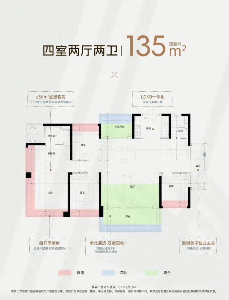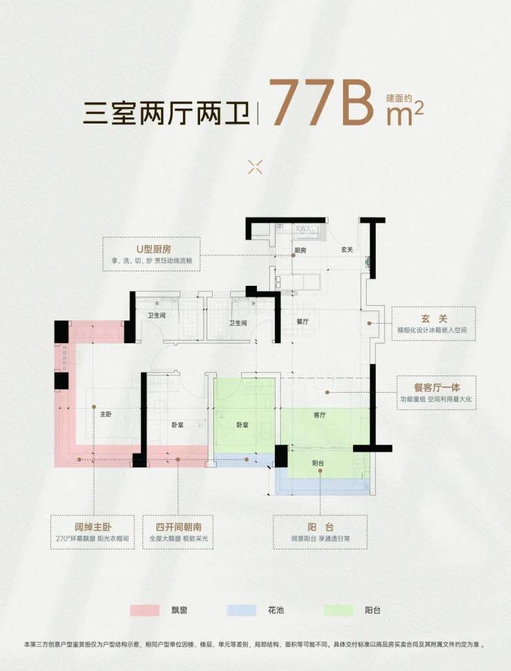 建面约77-135㎡三四房,四面宽南向,三房(最高)享约5米客厅,新规产品约127-137%高使用率,(但实际看了,感觉并没有宣传的那么高使用率)同面积不同户型,贴心打造多种人居空间。