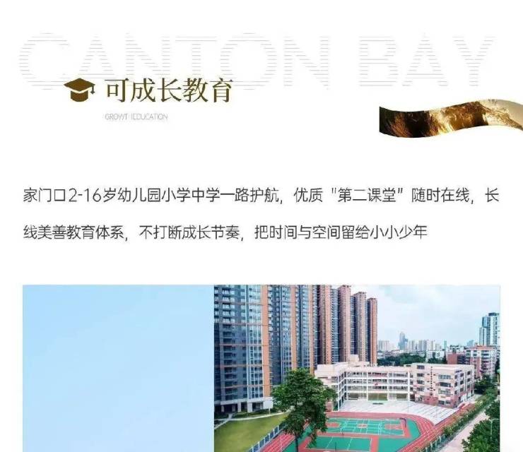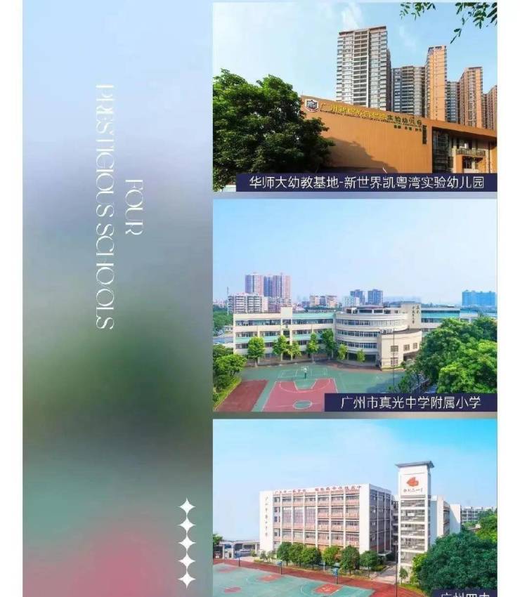 【西关培正小学】省一级百年老校,荔湾区家长心中排名第一的公立小学,原校师资,倾力打造,招生地段仅凯粤湾社区,人户一致,业主子女优先入读,不用摇号,生源纯粹,同质而居,与优秀为邻,共同进步;