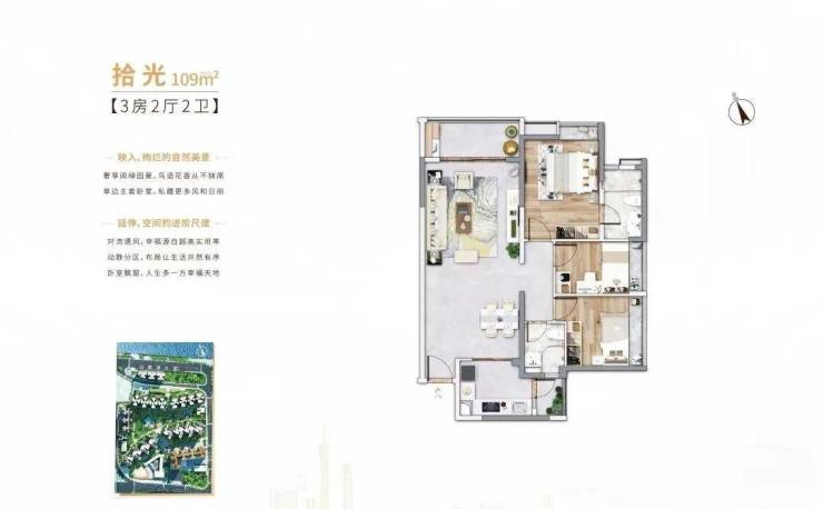 2.【109㎡三房两厅两卫】三面单边高质价比-大三房(4米开阔客厅,厅大房大,中心区难得三面单边,每个空间都是品质生活家的最爱。)