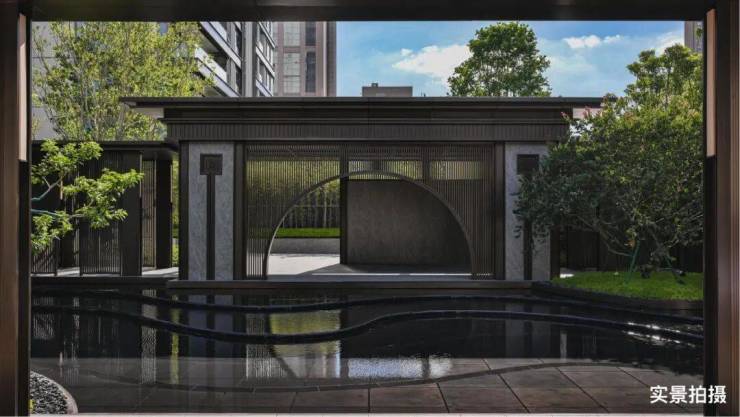 • 园林设计由上市公司普邦团队执笔,引“云山珠水”入院,一峰一轴连两脉,打造“归家五重景”:乘月归家、肆水归堂、碧影浮翠、山景会客厅、叠级水景墙。