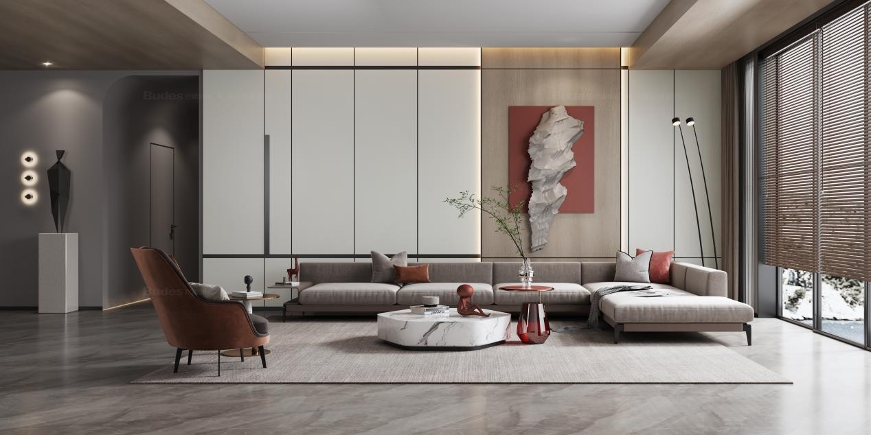 在升达家的“现代轻奢风”中,能够体验到多元化的装修,设计师融合多种家装元素,使整体空间既有北欧的简洁,又富含中式意境。L型沙发,能够让你在高压生活之外,有舒适的休憩空间,充分感受到放松和惬意。