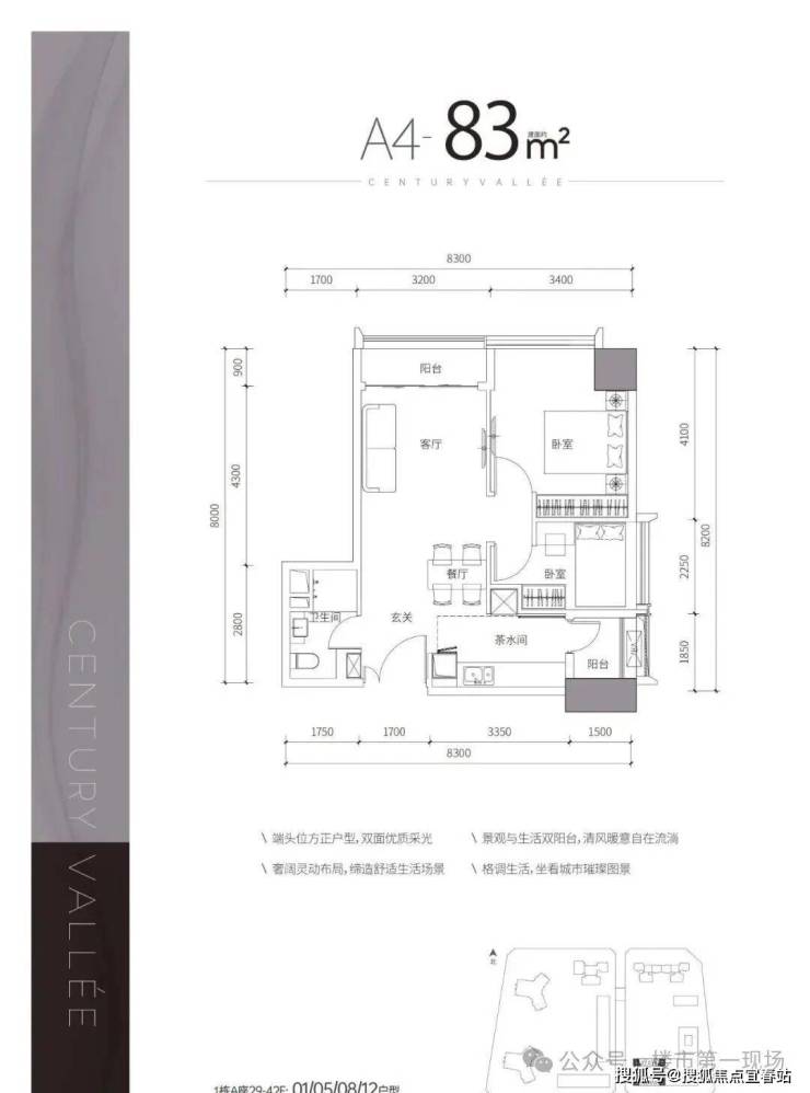 A4户型——建面约83㎡2房