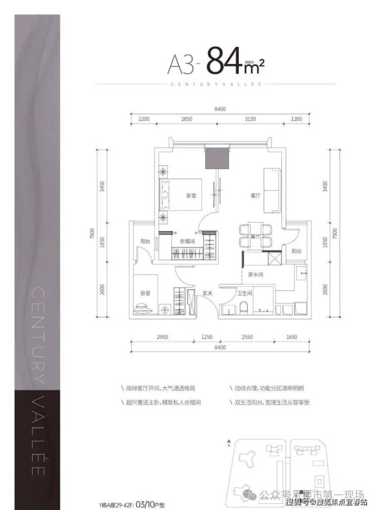 A3户型——建面约84㎡2房
