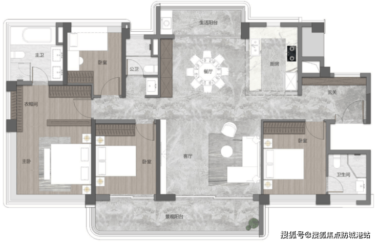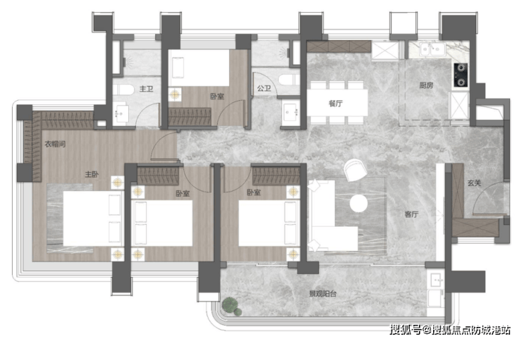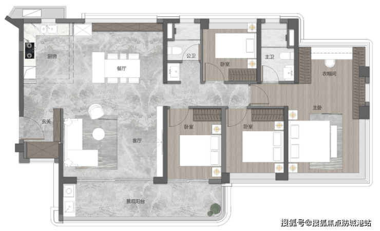 120㎡四房:四开间朝南,主卧带独立衣帽间,适合二胎家庭。