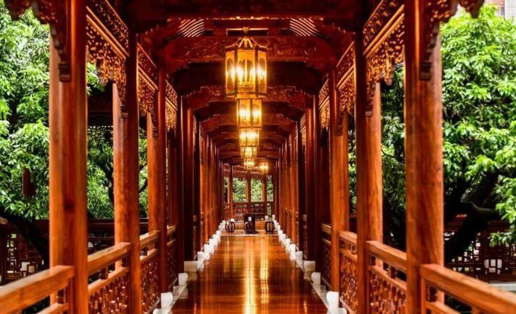 精挑细选的陶瓦屋顶、进口柚木木作及地板、汉白玉石材等顶级材料