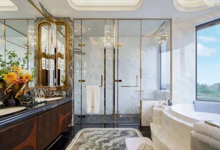🌟世界名牌享受:德国Villeroy&Boch洗手盆;法国THG龙头;意大利HAFRO按摩浴缸;意大利GLASS淋浴间;日本TOTO座厕;美国GRAFF五金配件;