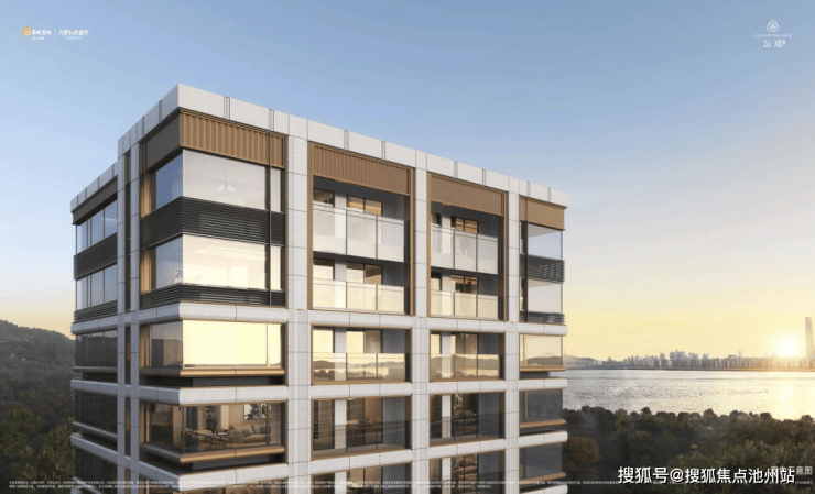 外立面打造上采用四面铝板+石材,以及豪宅标配大面玻璃,高楼层视野和采光都很爽。