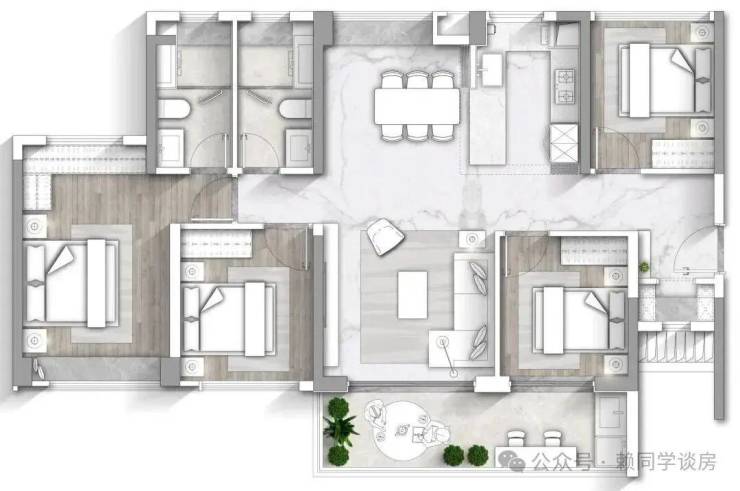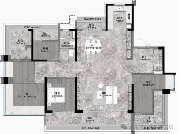 88平做到四房两卫双开间阳台,实用率去到130%,使用面积可以去到110平!!