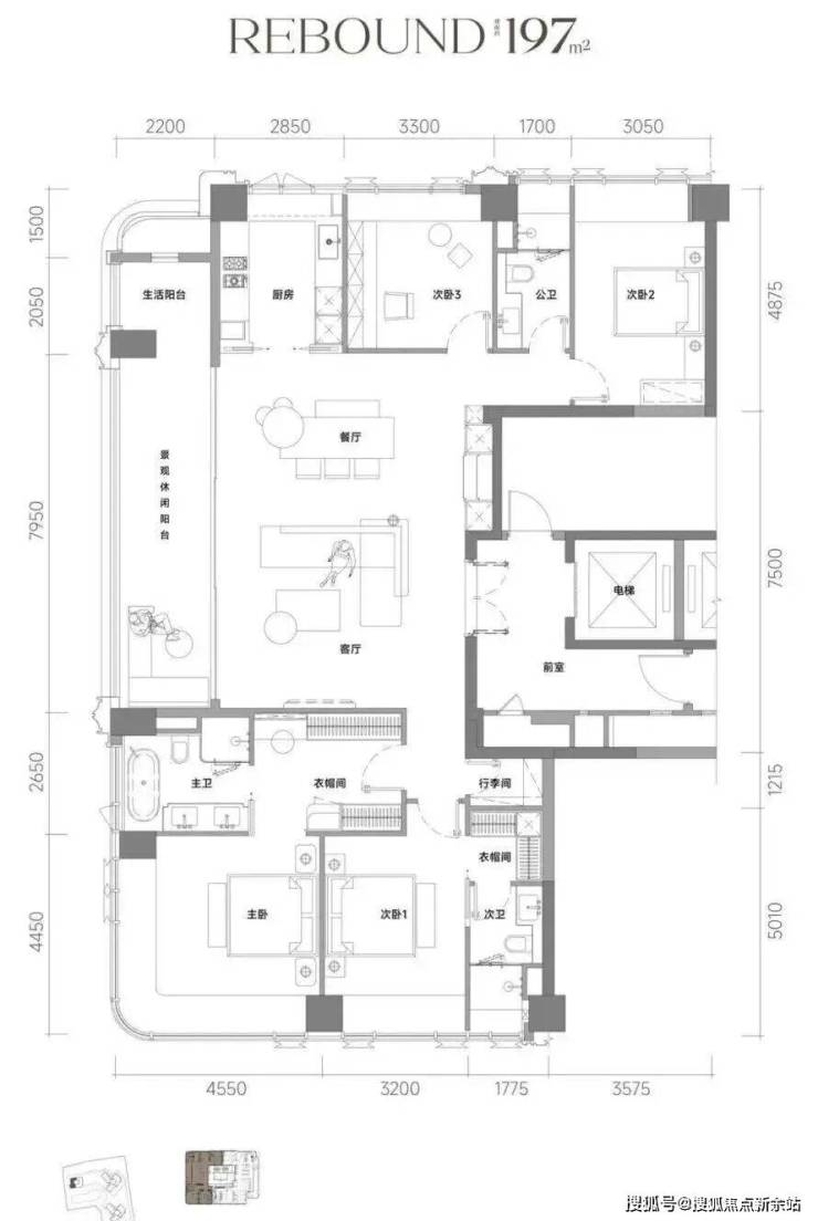 建面约197㎡户型为4房2厅3卫的正四房设计,全屋通透明厨明卫,豪气阔绰的客餐厅超大通厅,带来云端墅居的空间感。