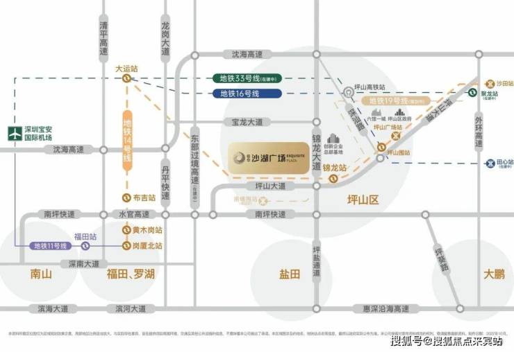 地铁:紧邻地铁14快线坪山门户站——锦龙站(约600米),12站福田岗厦北。周边临近地铁16号线(14号线一站直达坪山围站换乘)、地铁19号线(规划中)、地铁33号线(在建)。