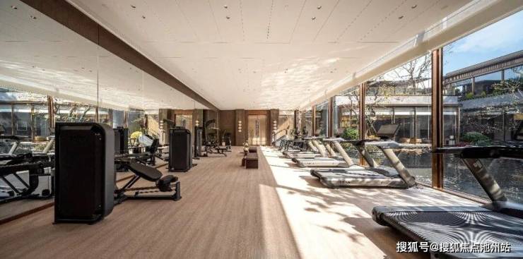 近1500平的下沉式会所,配置恒温泳池、健身房、18人位私宴厅、格调行政酒廊,而这样的空间围绕整个下沉式庭院排布,全景玻璃窗让景观与空间无界交融。