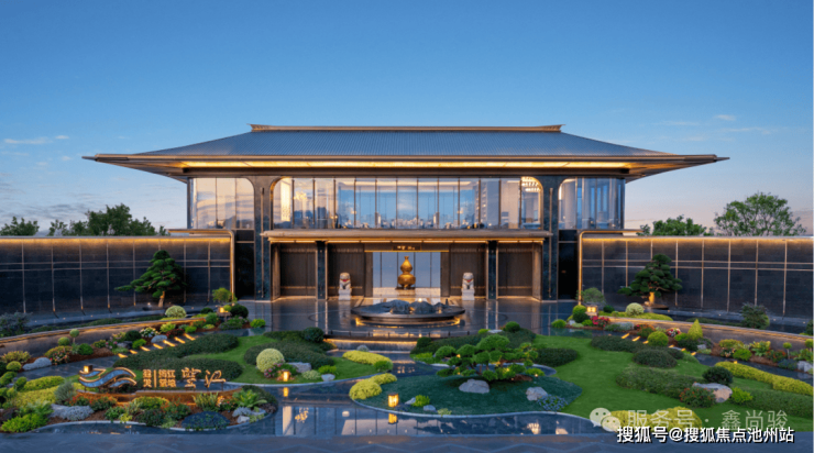地上归家礼序井然,以约16米高、81米宽的东方门楼为序,开启“三进"归家礼序,一进府门,气象万千;二进景观游廊,廊院婉转,水景映天;三进瀑布庭院,飞瀑叠水,桥影横斜。三大景观轴铺就沿途风景,步移景异。