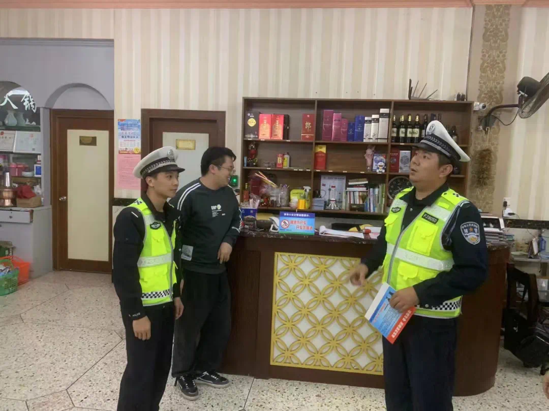 活动中,民警向经营者发放交通安全宣传资料,并在前台、大厅等显眼的位置摆放“喝酒不开车,开车不喝酒”提示牌,粘贴交通安全宣传海报,营造浓厚的宣传氛围。