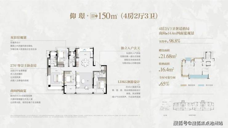 独立门厅、独立入户、中西双厨、超大主卧、二层三个套房设计、星空露台。