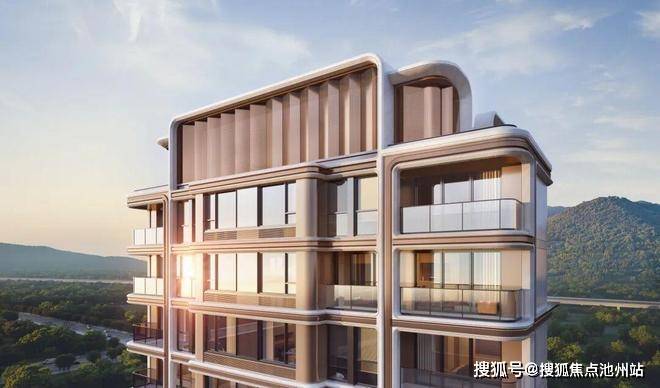 建筑立面汲取瓯江的灵动韵律,以流线型曲线轮廓与层叠的波浪肌理,勾勒出现代海派的简约风尚。香槟金色的冠顶、腰线与竖向线条,于细节处勾勒摩登轮廓;大面积通透玻璃幕墙的应用,营造出“无界美学”的视觉意境,重塑龙湾天际线的艺术表情。