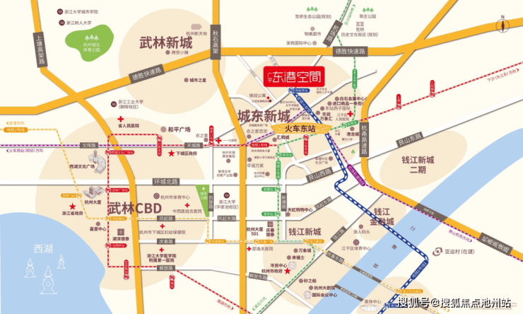 2.【交通】:地铁6号奥体专线上盖!一站到达火车东站!轻松换乘四线!德胜快速路、秋石高架环绕,自驾10到15分钟即达武林,出行十分便利!