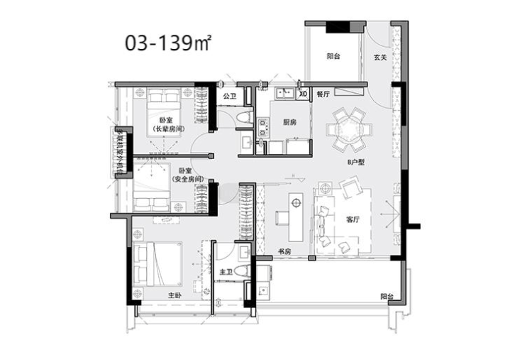 “舒适尺度” 6-7米双联阳台,格局方正实用,动静分区,其中02户型带双阳台,05户型主卧270°飘窗
