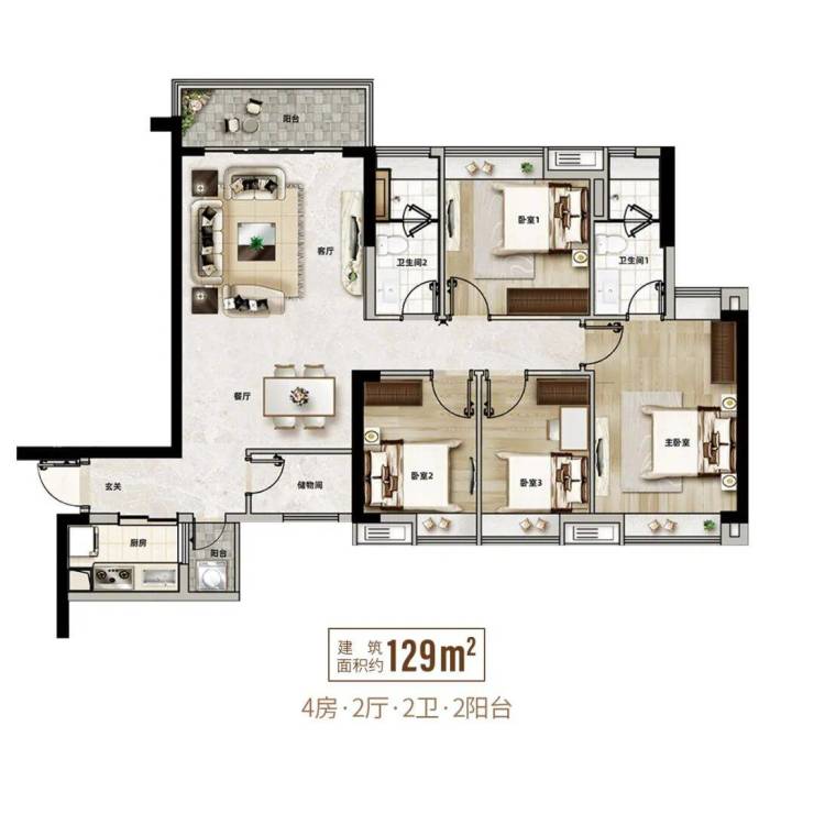 【建面约129㎡ 阔卓四房两厅两卫双阳台】