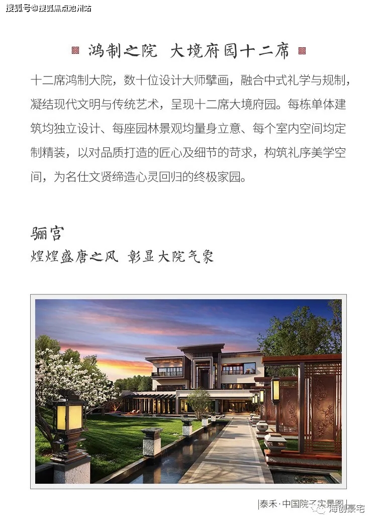 极具创造精神的泰禾·中国院子不断刷新人们对于豪宅的认知,迎合了现代财富阶层的审美需求。380-2200㎡传世宅邸,礼献中国领袖阶层。