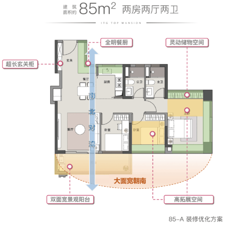 1. 85㎡ 三房两卫户型