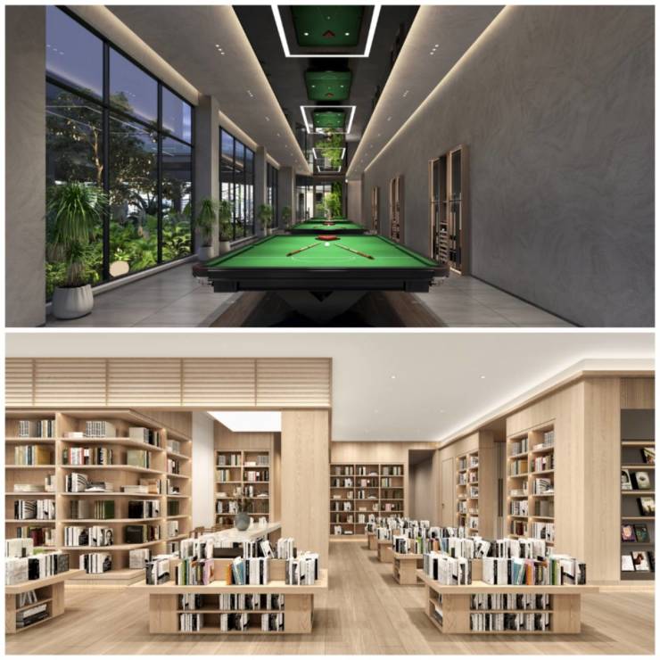 娱乐场域 :邻里文化交流场域休闲茶室、书吧、咖啡吧,斯洛克。作为家的延伸空间,承载邻里文化,将家人间的和乐、友邻间的谈笑臻藏,共建社区“邻聚力”。