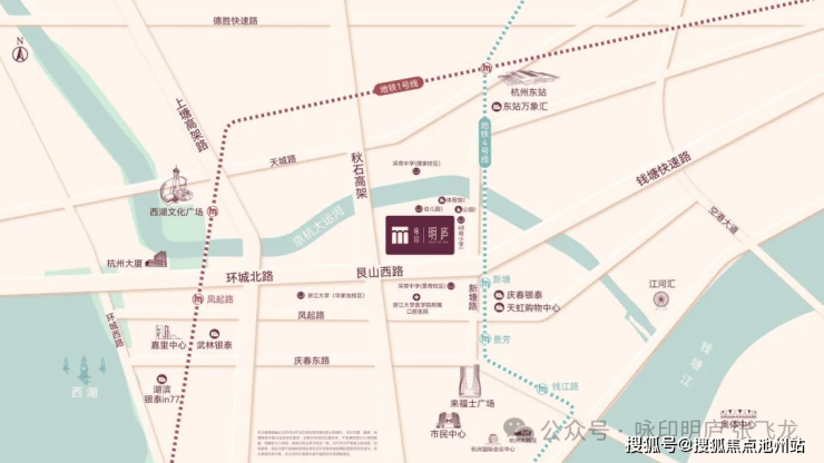 直线距离约4公里杭州大厦,武林恒隆广场(招商中)、杭州中心、武林银泰,升腾武林烟火;