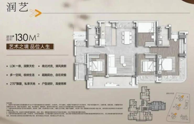 目前项目在售户型涵盖建面约81-130㎡三至四房,均为带装修交付,实用率约105%,参考均价4.2万元/㎡。
