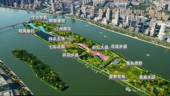 4.即将变身为世界级生态公园岛,未来将不建任何住宅,保留原生湿地林区,还会有星野营地、伴农生活、汀州观鸟等江心十景。