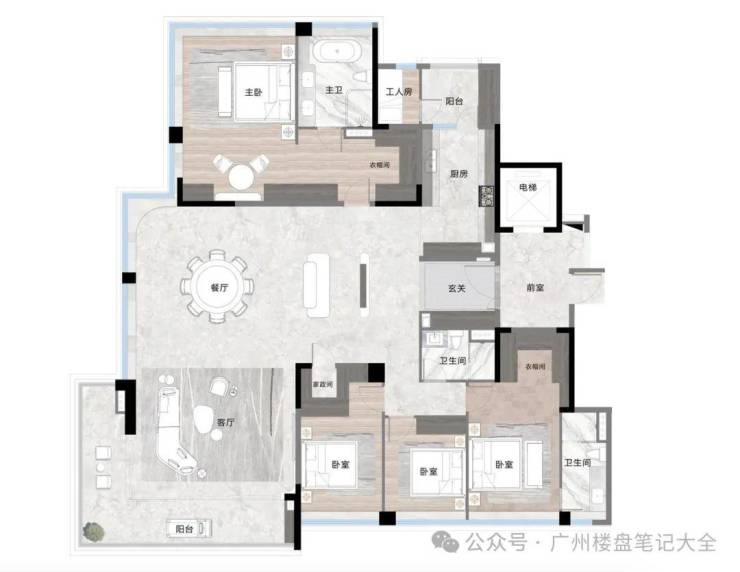 ——全套房设计·122㎡定制化社交巨厅·双归家动线·15米270°转角阳台