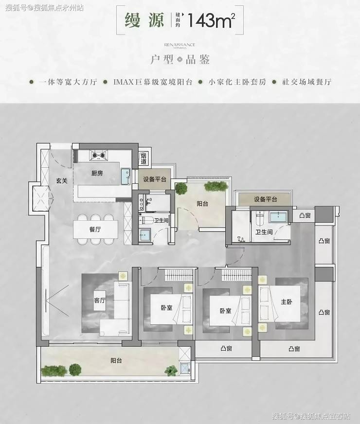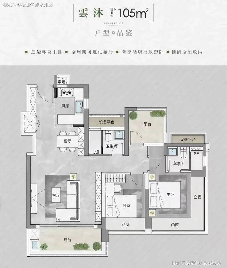 105㎡户型:这个户型的得房率比较高,赠送阳台可以改成房间,主卧飘窗是L型设计,而且中间没有承重墙,很好利用。✨✨中海·云启源境开发商电话:400 -859-7606【☎☎开发商电话已认证】✨✽✽✽✽