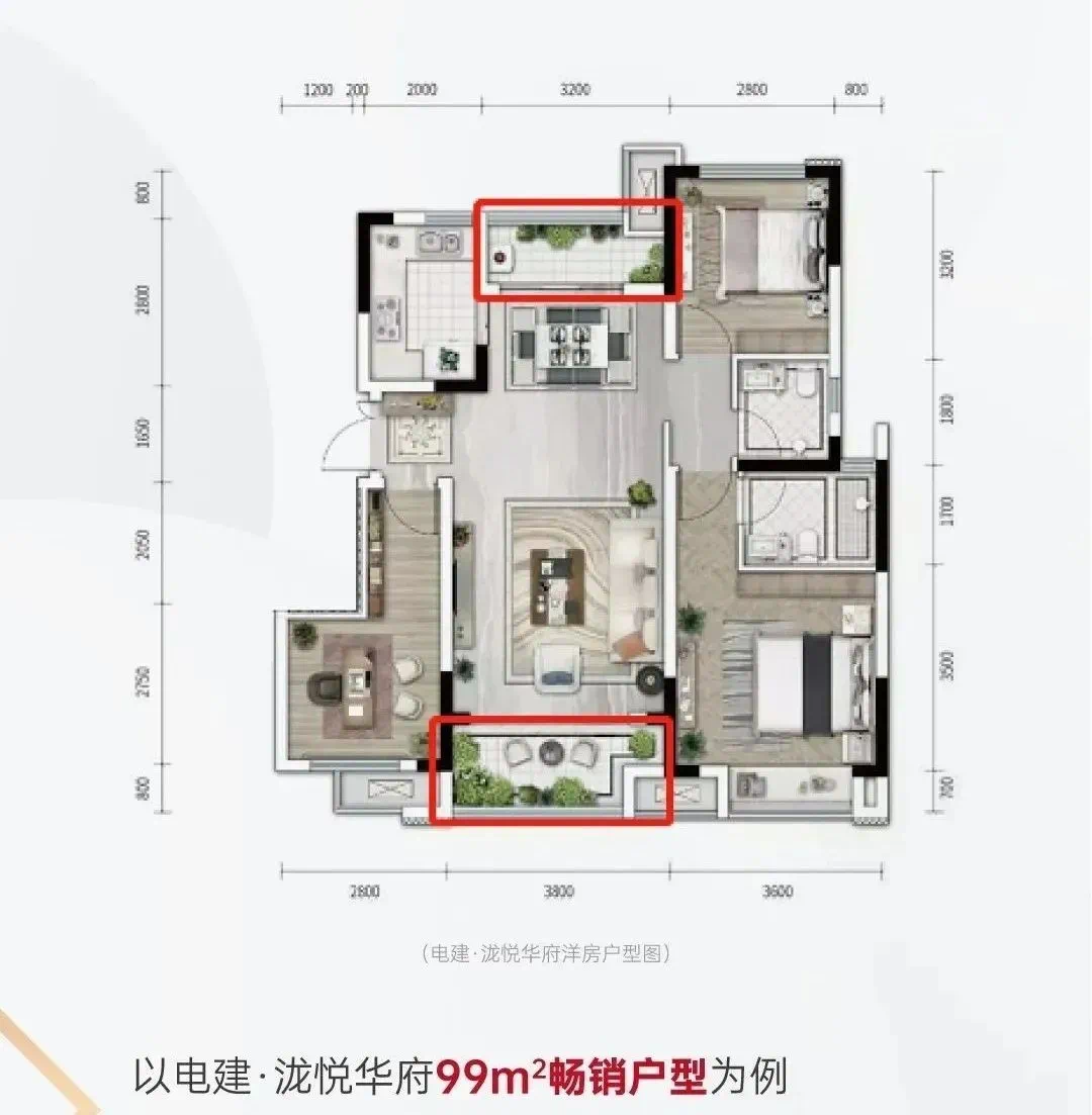 3.8米客厅面宽、使用面积超过21平米的主人区、独立餐厅,可变U型明厨设计,双操作台、自带阳台采光。两次卧室轻松容纳1.5床+家具摆设,南北阳台大通风面,也兼顾生活和观景。