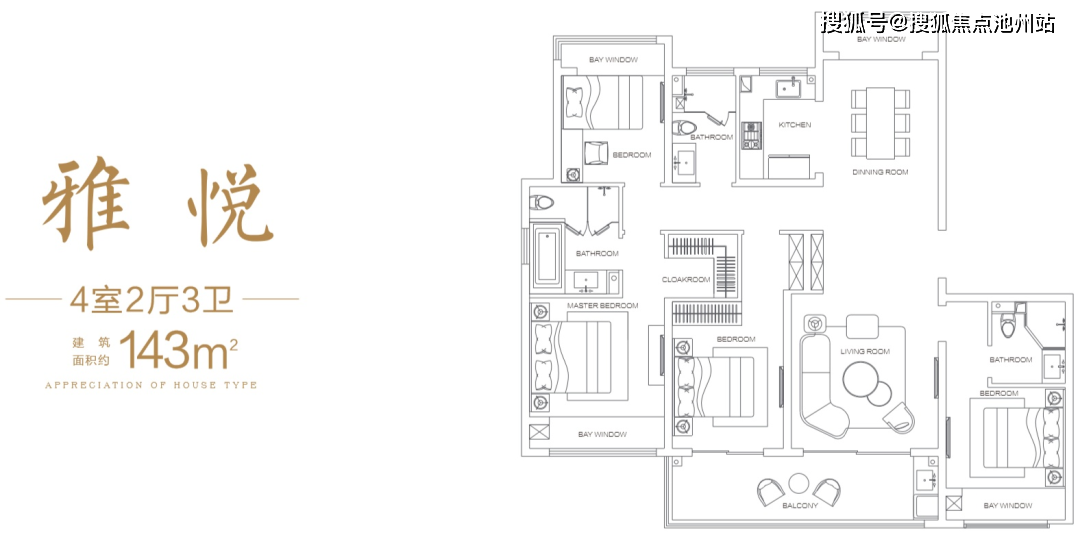 融悦时光的户型整体比较方正,南北通透,共计4种户型,建面分别约是113、126、143、165㎡,其中113㎡、126㎡、143㎡各有两个户型。