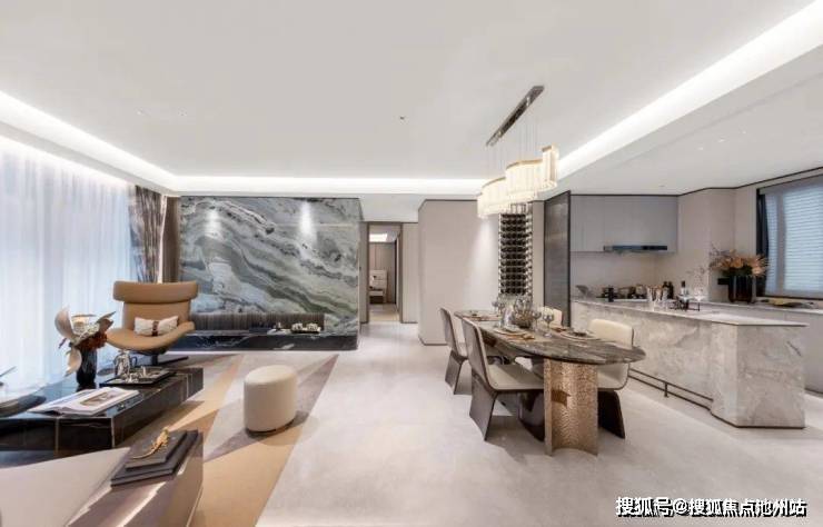 与以人为本的LDKB一体化家庭聚场设计,将厨房、餐厅、会客厅、兴趣空间等分区融合互通,为家庭创造更多丰富情境。