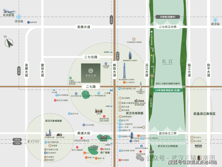 大型商业综合体武汉天地、壹方南馆、壹方北馆,构筑全业态商业系统,平安金融中心、环球智慧中心、武汉企业天地1号等近20家世界500强、60余家外资及合资企业,强势铸就二七滨江价值高地。