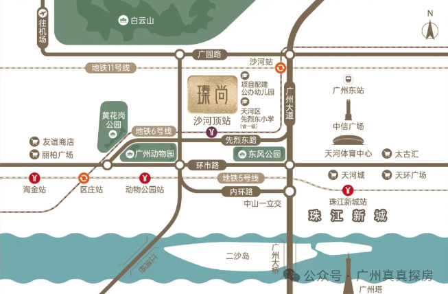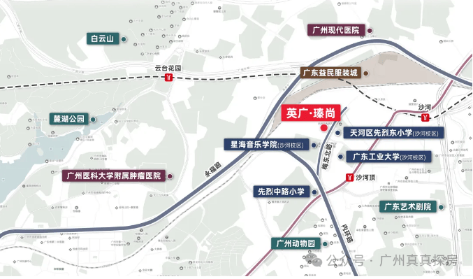 项目东面直线距离不到1公里就是白云山,2公里范围内更有六公园(广州动物园、云台花园、麓湖公园、黄花岗公园、东风公园、燕岭公园)环绕,形成天然氧吧。