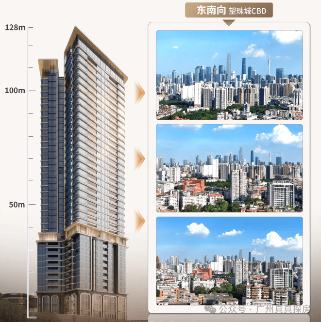 东南向则是小蛮腰和东西塔闪耀的珠江新城。可以想象,充满生气的夏日傍晚,站在南向大阳台,看着CBD的灯光慢慢亮起,感觉它的璀璨,却又与之保持一定的距离。繁华而不喧闹,这就是高品质住区的生活方式。