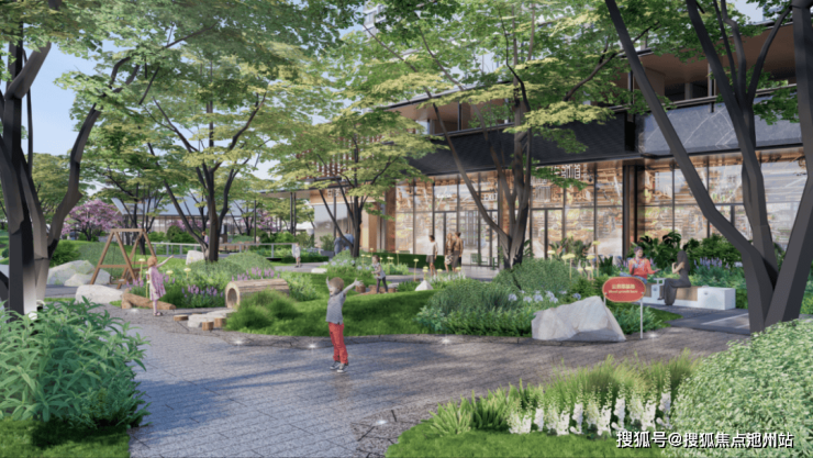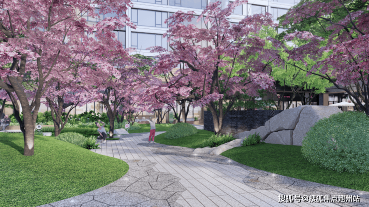 小区外围,街道与项目没有采用生硬围墙作为隔断,而是结合五感沉浸式樱浪公园实现过渡,更软性的融入