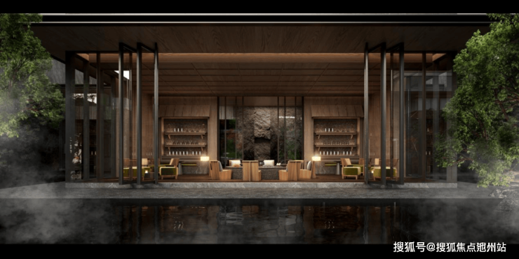 约800㎡超大面积镜面水景,置身其中,会仿佛处于《春江花月夜》中的“春江花月,浮光潮生”的深远