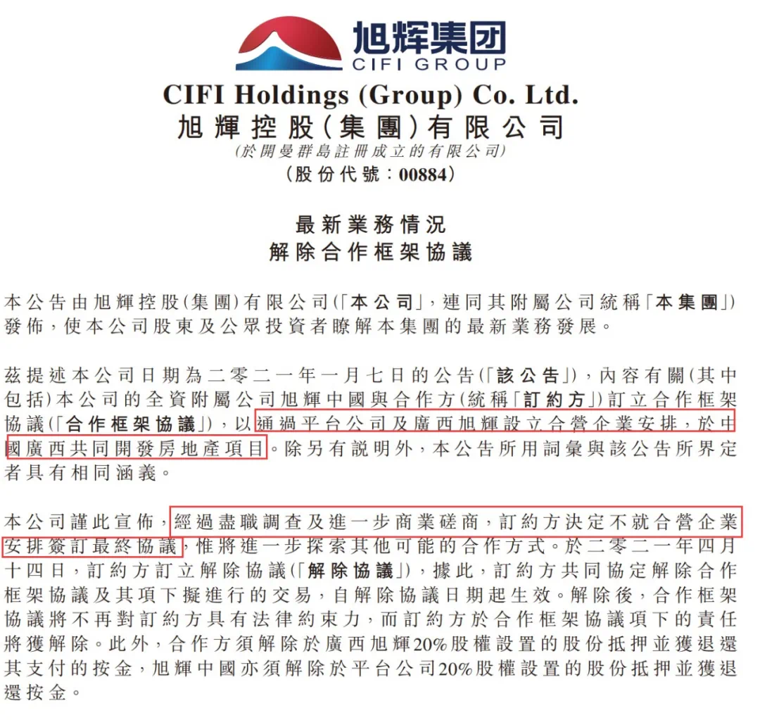 对于此次“短暂的缘分”,旭辉公告里说的是“经过尽职调查及进一步商业磋商”。