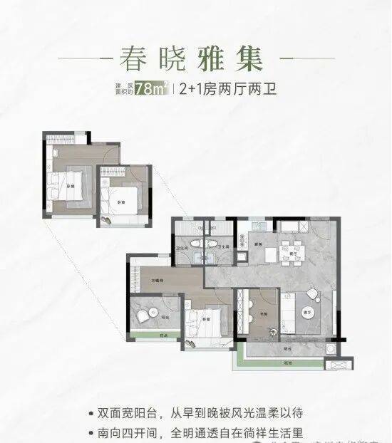 【约78㎡ 2+1房2厅2卫】