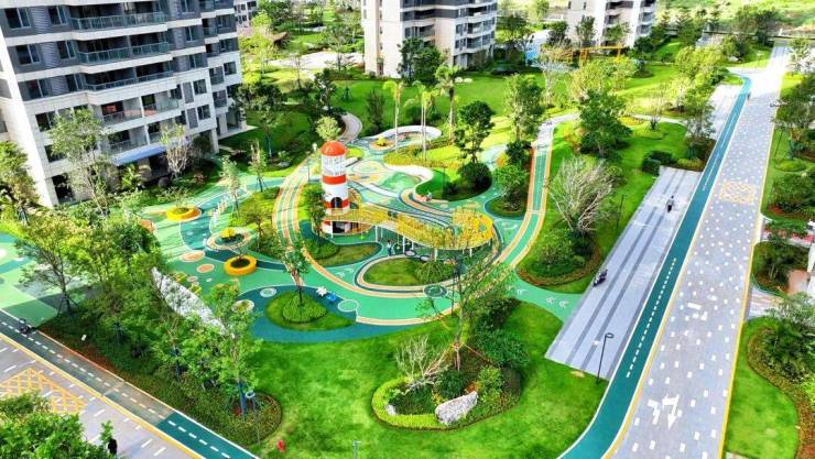 🌴“海境·森林”国际健康运动社区内外“双公园” 40%绿地率 把家搬进风景里外拥千亩乐园盛景,内揽14万方热带风情园林:约870m乐跑环道、约3700㎡中央景观会客厅、约950㎡“海洋奇遇”儿童主题乐园、青年活力健身空间、矿石印迹花园、康养花园、林荫休憩空间等四大全龄空间,以公园化自然体验,在风景中愉悦身心。